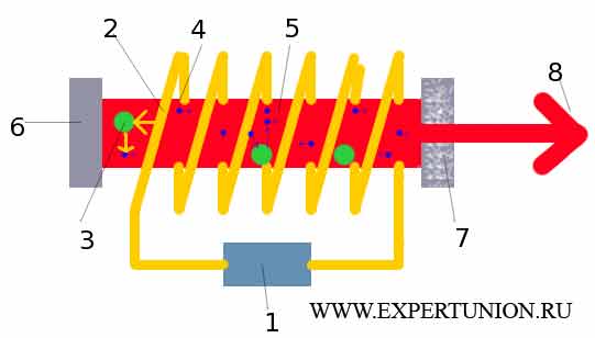 Когда в условиях инверсии населенности уровней электрон переходит на нижний уровень, испуская фотон, то последний, проходя через вещество, по сути дела, проходит через множество окружающих его возбужденных атомов и способен вызвать излучение фотола у какоголибо из них (подробнее - читать далее)
